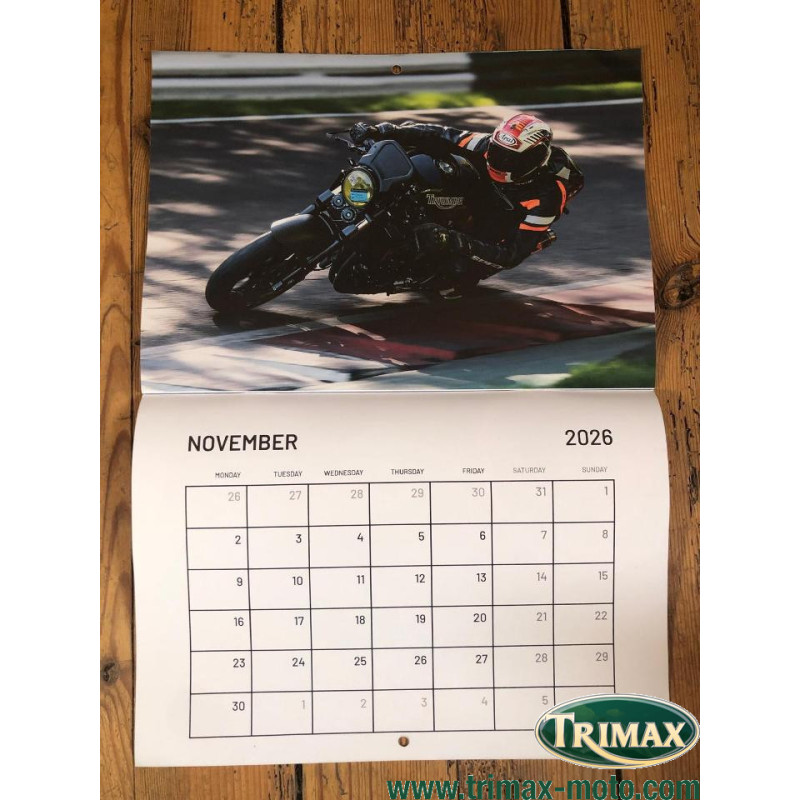 calendrier 2026 fait par Mark Gaylard, fondateur du MK1STOC (Mark 1 speed triple owner club, le club des proprios de speed première génération).