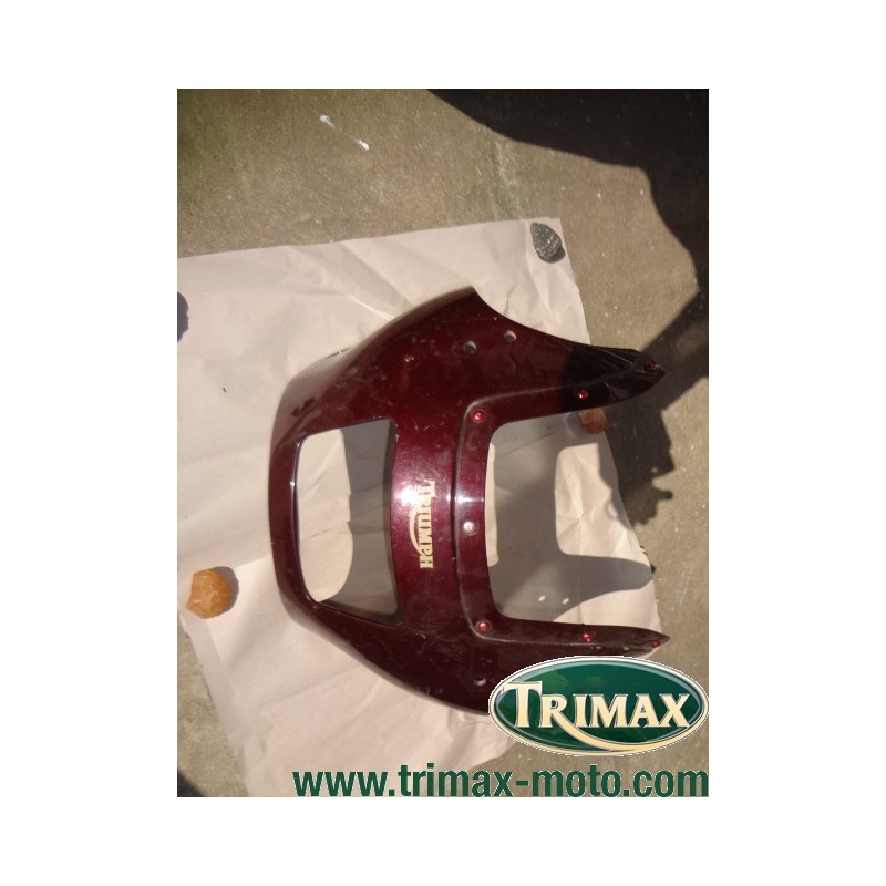 n° 4- Tête de fourche bordeaux de Trophy 1 ; inserts phare ok ; percage pour des clignos goutte d'eau ; diverses rayures ;